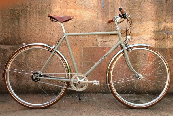 RAKETE Roadster in Lichtgrau mit Basil Portland Front-Rack