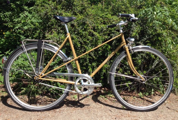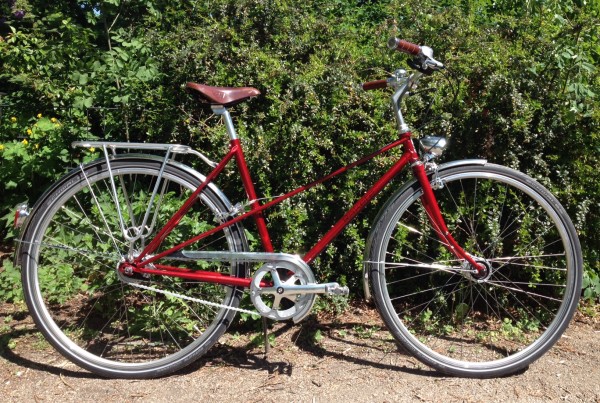 Dorotheas RAKETE Meral für breite Reifen in Weinrot-matt mit Shimano Alivio