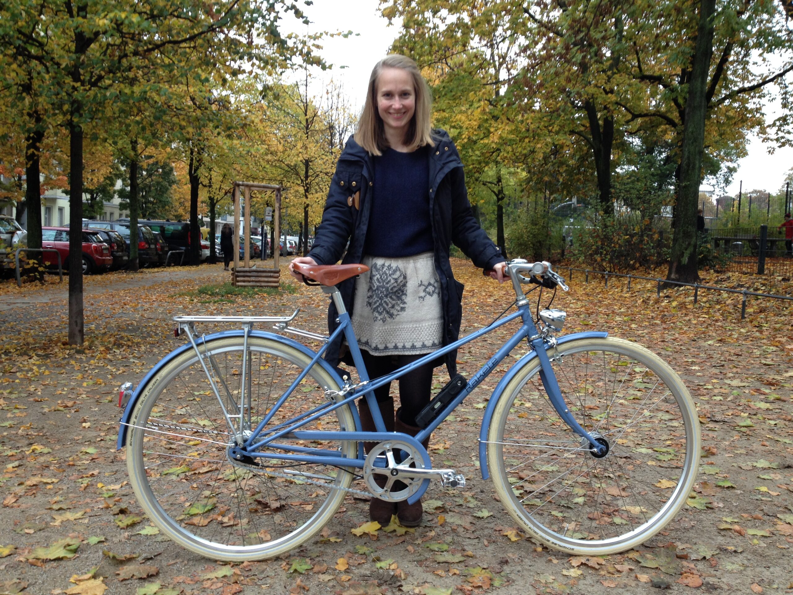 Leonie ist extra aus Dresden gekommen um ihre neue RAKETE Mixte in Taubenblau persönlich entgegenzunehmen.