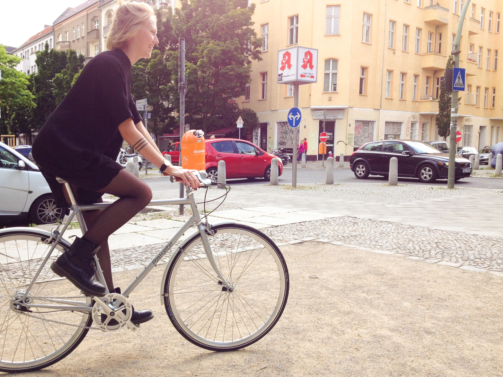 Nina macht es sich sehr schön auf einem auf Wesentliche reduzierten und sehr stilvollen Roadstar mit gemufftem Stahlrahmen in Perlsilber und Nexus-7-Gang. Das ist: RAKETE! Wir wünschen schöne Fahrt!