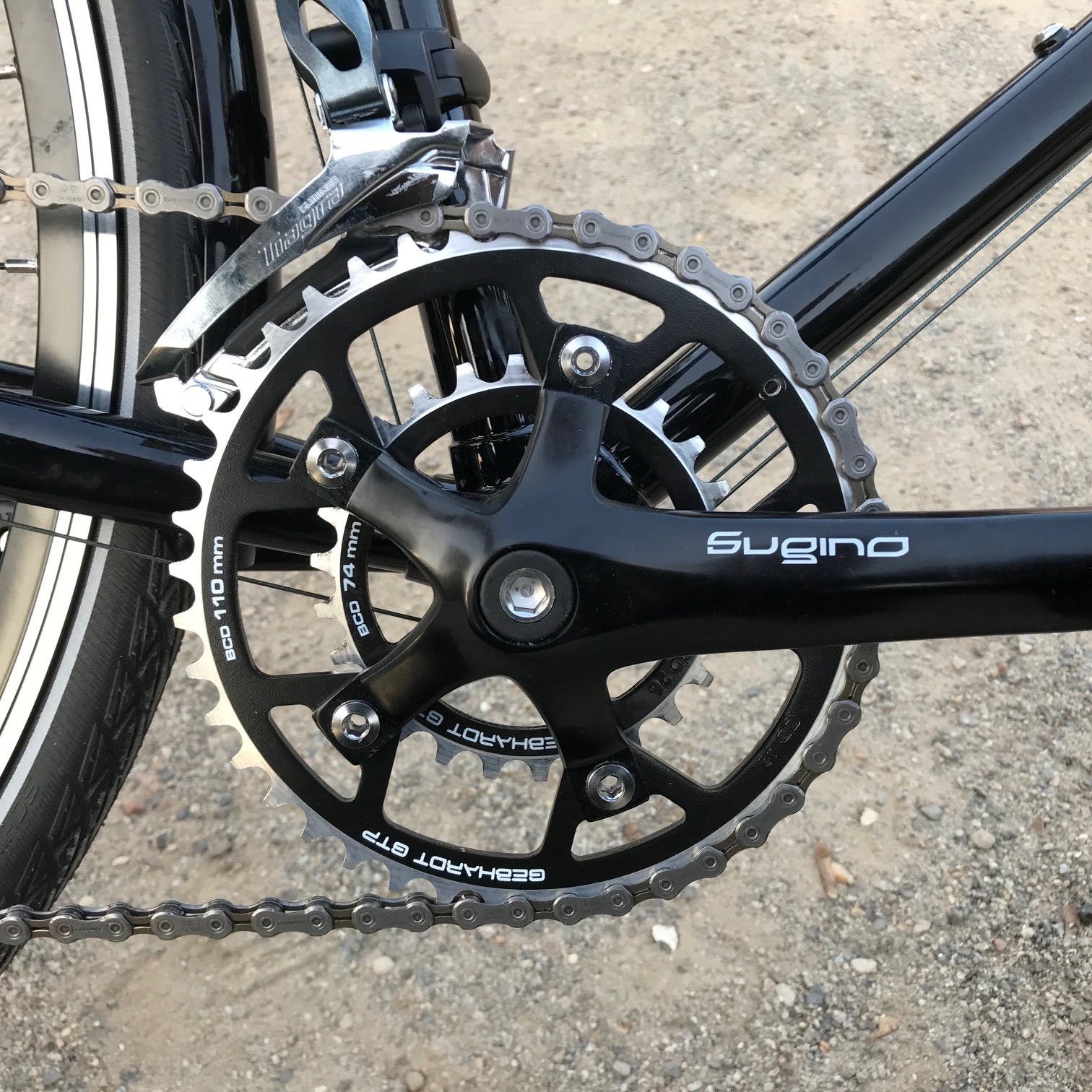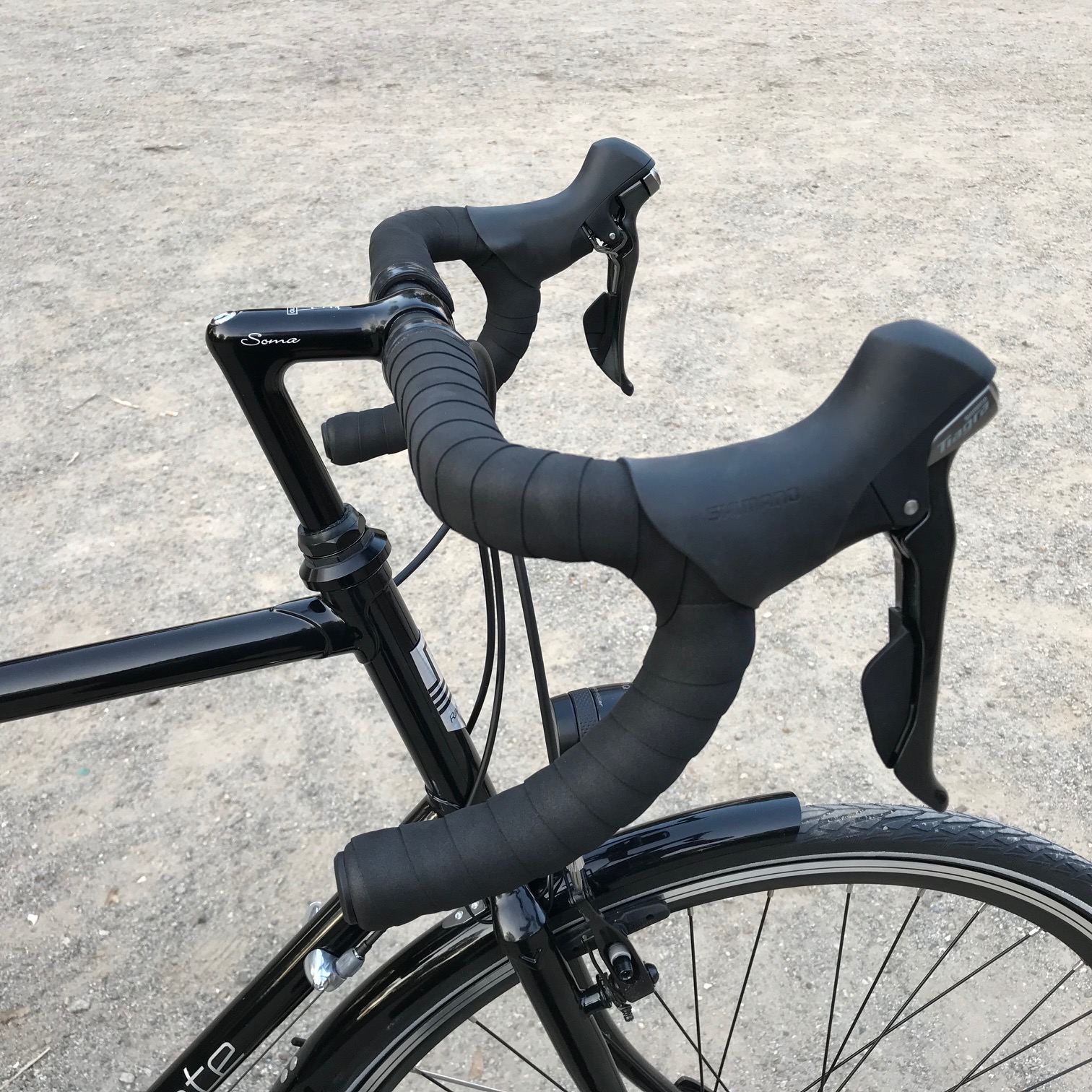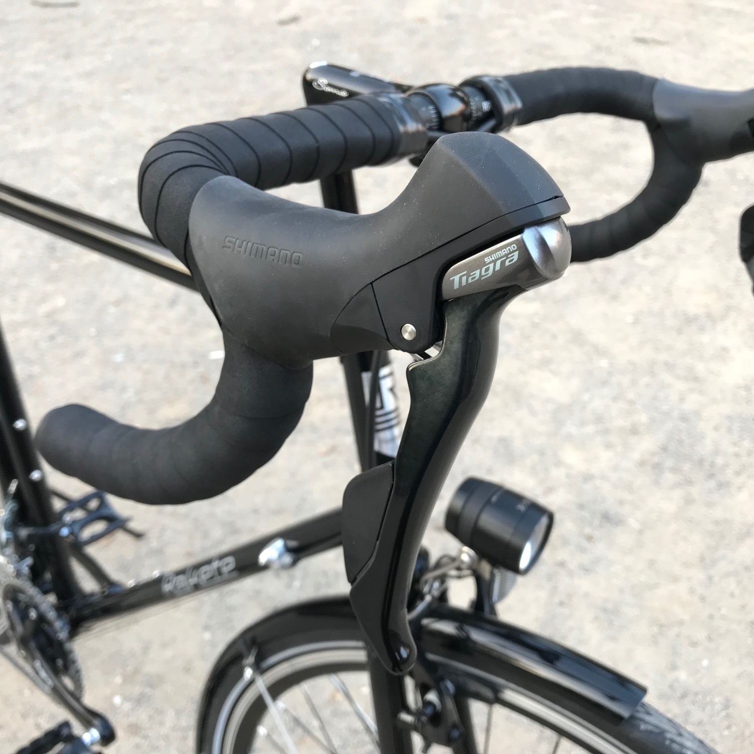 Mit Shimano Tiagra Kettenschaltung, Shimano Mini-V-Brakes, B&M IQ X Scheinwerfer, Tubus Logo Gepäckträger, SKS Schutzblechen und Soma Sutro Vorbau.