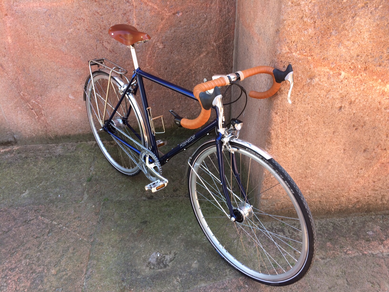 RAKETE Roadster mit Drop-Bar und 8 Gang Shimano Alfine Nabenschaltung. Schalten lässt sich die Nabenschaltung über einen Lenkerendschalthebel von Jtek, eine einfache und gute Lösung, die auch mit der Alfine 11 Nabe funktioniert.